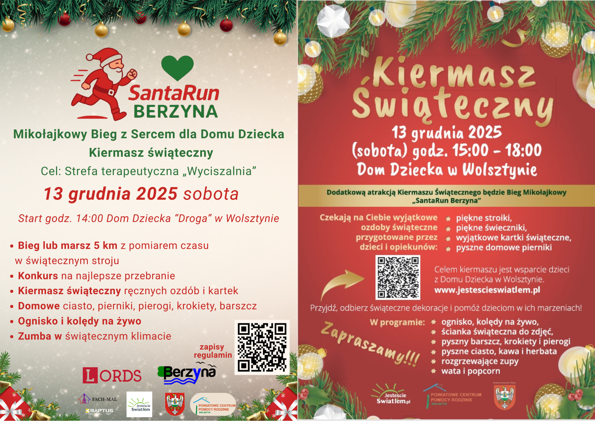 Bieg Charytatywny SANTARUN BERZYNA Mikołajkowy Bieg z sercem dla Domu Dziecka -13 grudnia 2025 Dom Dziecka Droga w Wolsztynie